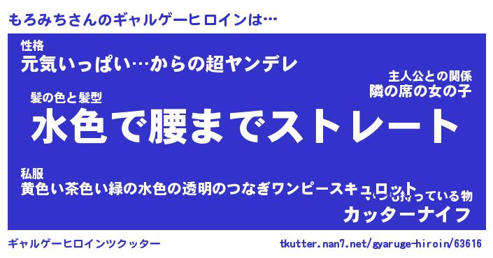 | 女子向けラノベタイトル風あだ名 | 『(仮)もろみちのやんごとなき事情』 |