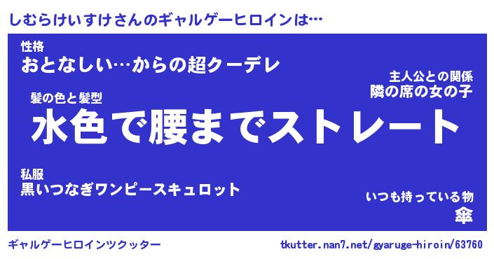 | 男性向けラノベタイトル風あだ名 | 『しむらけいすけの憂鬱』 |