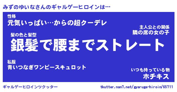 | 男性向けラノベタイトル風あだ名 | 『みずのゆいなの憂鬱』 |