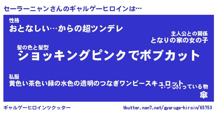 | 男性向けラノベタイトル風あだ名 | 『セーラーニャンの憂鬱』 |