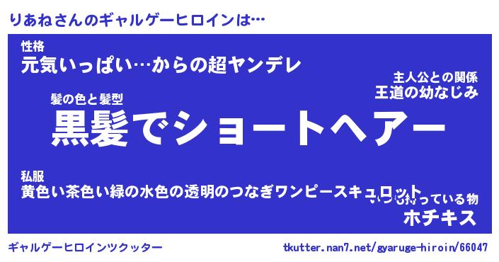 | 男性向けラノベタイトル風あだ名 | 『りあねの憂鬱』 |