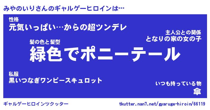 | 男性向けラノベタイトル風あだ名 | 『ミヤノイリアートオンライン』 |