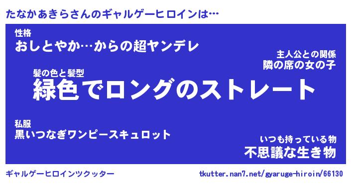 | ヒーロー風カッコイイあだ名 | 『スーパータナカアキラ』『天弓騎士タナ』 |