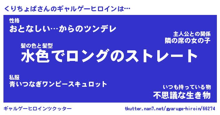 | 男性向けラノベタイトル風あだ名 | 『くりちょぱの憂鬱』 |