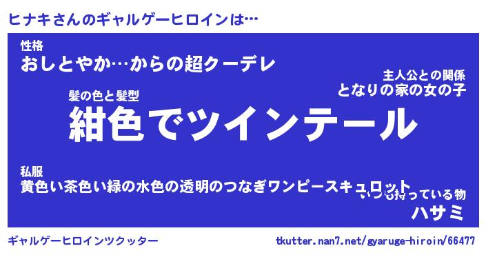| 意味不明あだ名 | 『ペロリンヒナキ』『ヒナキフォーエバー』 |