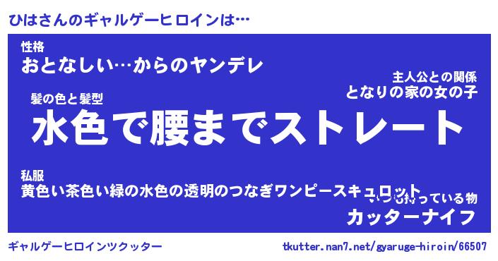 | 女子向けラノベタイトル風あだ名 | 『(仮)ひはのやんごとなき事情』 |