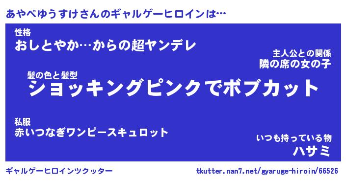 | 女子向けラノベタイトル風あだ名 | 『(仮)あやべゆうすけのやんごとなき事情』 |