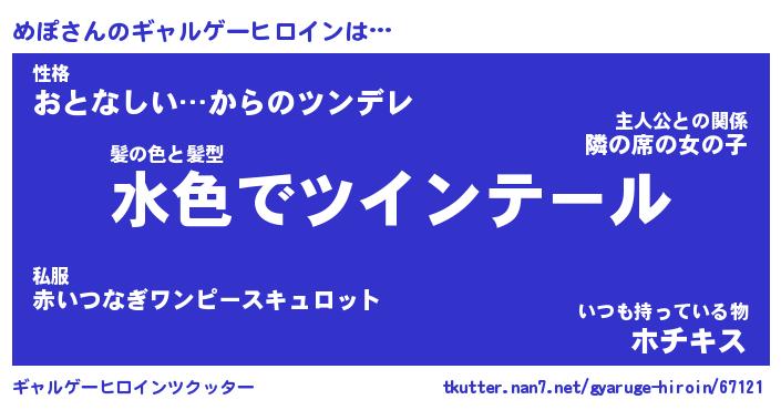| 男性向けラノベタイトル風あだ名 | 『めぽの憂鬱』『ノーゲーム・ノーメポ』 |