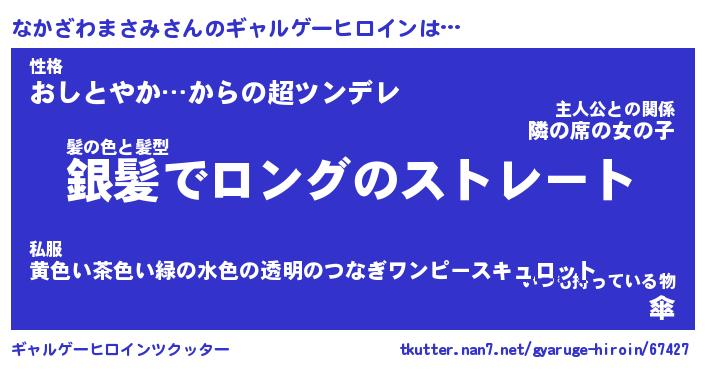 | 男性向けラノベタイトル風あだ名 | 『なかざわまさみの憂鬱』 |