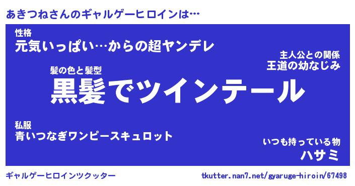 | ファンタジー風あだ名 | 『アキフェル』『エターナルアキツネー』 |