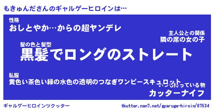 | 女子向けラノベタイトル風あだ名 | 『(仮)もきゅんだのやんごとなき事情』 |