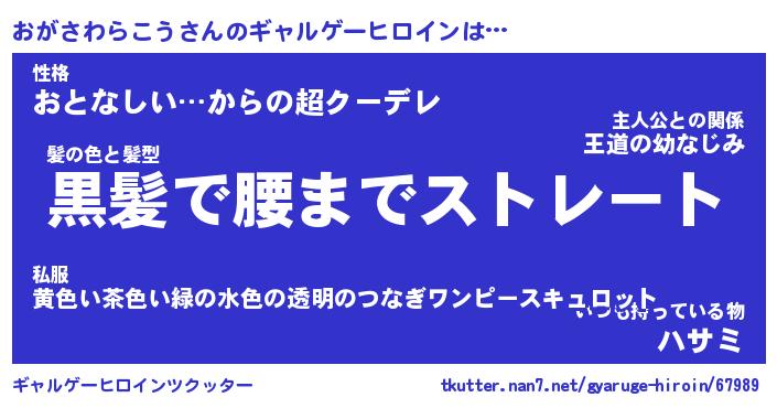 | 男性向けラノベタイトル風あだ名 | 『おがさわらこうの憂鬱』 |