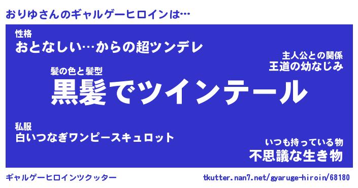 | 男性向けラノベタイトル風あだ名 | 『おりゆの憂鬱』 |
