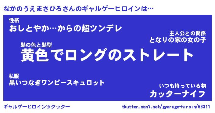 | 女子向けラノベタイトル風あだ名 | 『誰かこのなかのうえまさひろを説明してください! ~契約から始まるウェディング~』 |