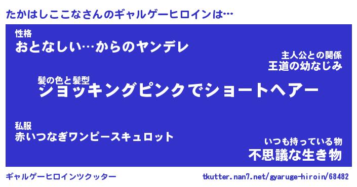 | 女子向けラノベタイトル風あだ名 | 『(仮)たかはしここなのやんごとなき事情』 |