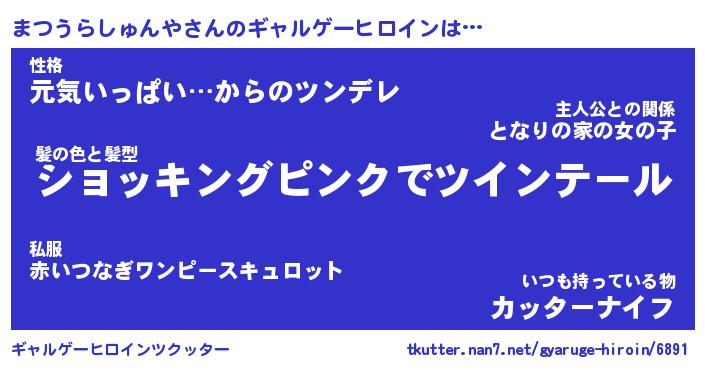 | 男性向けラノベタイトル風あだ名 | 『まつうらしゅんやの憂鬱』 |