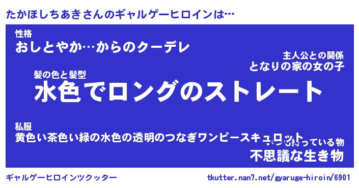 | 男性向けラノベタイトル風あだ名 | 『たかほしちあきの憂鬱』 |