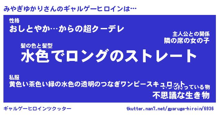 | 男性向けラノベタイトル風あだ名 | 『みやぎゆかりの憂鬱』 |