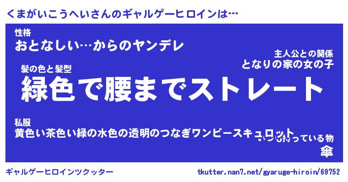 | 肩書あだ名 | 『くまがいこうへい御曹司』 |