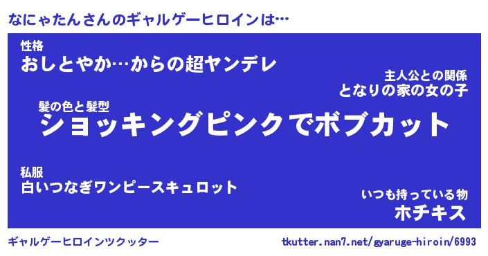 | 男性向けラノベタイトル風あだ名 | 『なにゃたんの憂鬱』 |