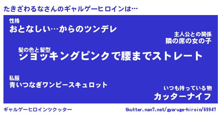 | 男性向けラノベタイトル風あだ名 | 『たきざわるなの憂鬱』 |