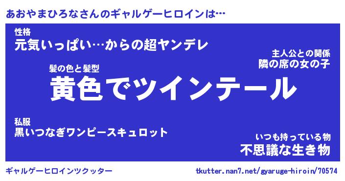 | 男性向けラノベタイトル風あだ名 | 『アオヤマヒロナアートオンライン』 |