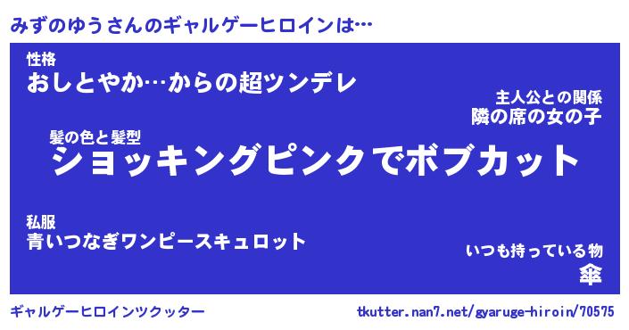 | 女子向けラノベタイトル風あだ名 | 『(仮)みずのゆうのやんごとなき事情』 |