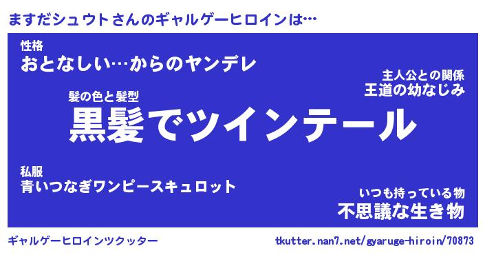 | 女子向けラノベタイトル風あだ名 | 『ますだシュウト姫と円卓の騎士』 |