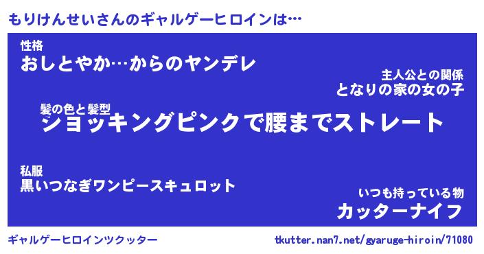 | 女子向けラノベタイトル風あだ名 | 『(仮)もりけんせいのやんごとなき事情』 |