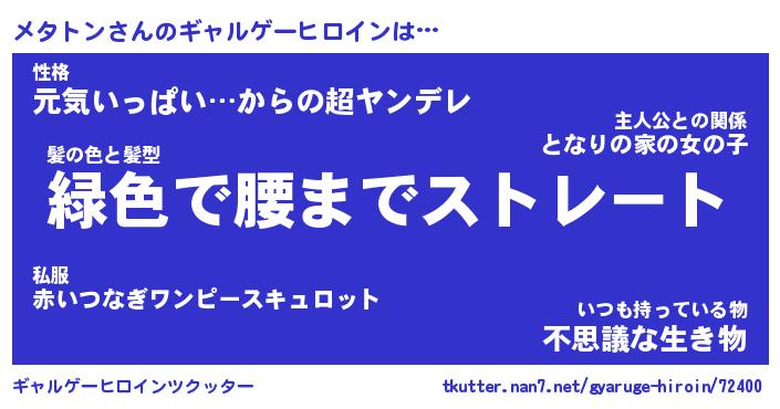| ヒーロー風カッコイイあだ名 | 『スーパーメタトン』『魔戒騎士メタ』 |