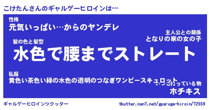 | 男性向けラノベタイトル風あだ名 | 『こけたんの憂鬱』 |