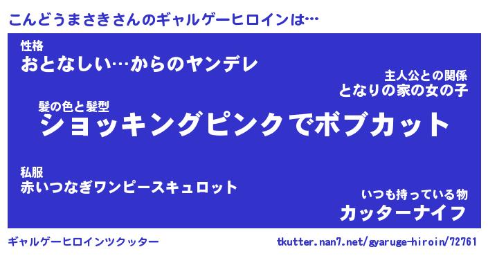 | 男性向けラノベタイトル風あだ名 | 『こんどうまさきの憂鬱』 |