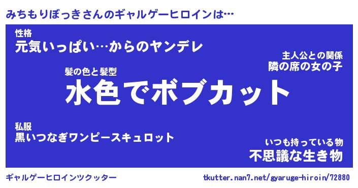 | 男性向けラノベタイトル風あだ名 | 『みちもりぼっきの憂鬱』 |