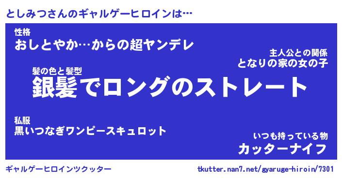| ファンタジー風あだ名 | 『トシフェル』『エターナルトシミツー』 |