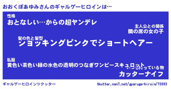 | 男性向けラノベタイトル風あだ名 | 『おおくぼあゆみの憂鬱』 |