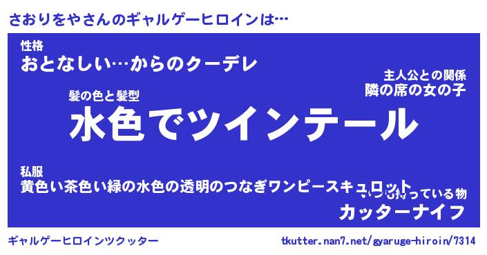 | ファンタジー風あだ名 | 『サオフェル』『エターナルサオリヲヤー』 |