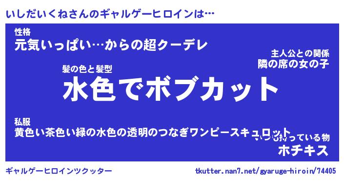 | 女子向けラノベタイトル風あだ名 | 『(仮)いしだいくねのやんごとなき事情』 |