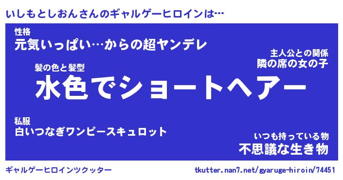 | 男性向けラノベタイトル風あだ名 | 『いしもとしおんの憂鬱』 |