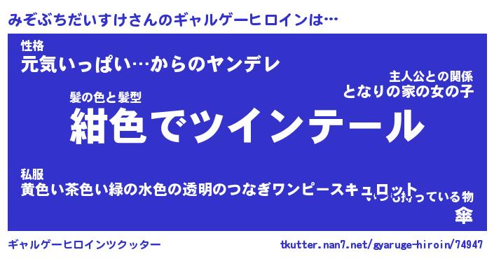 | 女子向けラノベタイトル風あだ名 | 『誰かこのみぞぶちだいすけを説明してください! ~契約から始まるウェディング~』 |