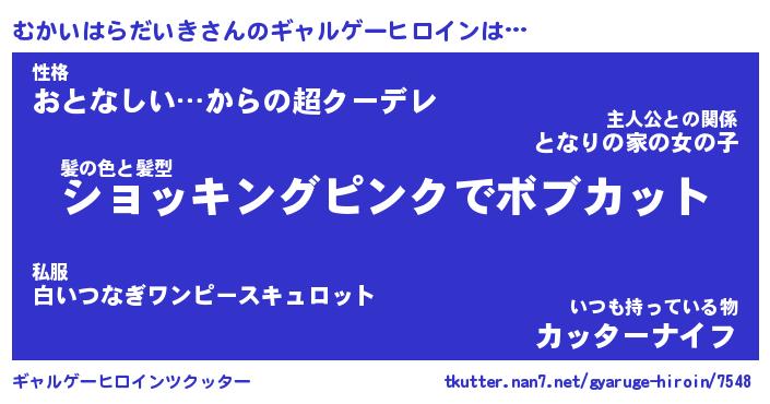 | 女子向けラノベタイトル風あだ名 | 『(仮)むかいはらだいきのやんごとなき事情』 |