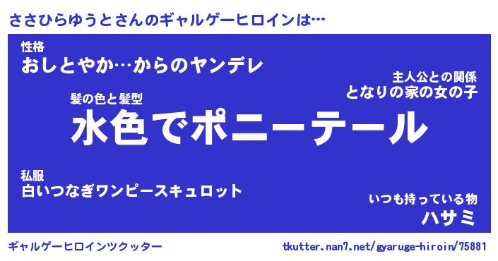 | ヘコむあだ名 | 『ささにゅー』『つくし』『ささを』 |