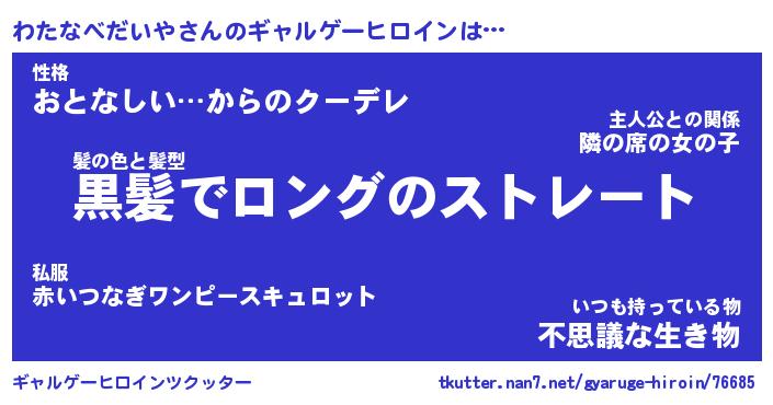 | 女子向けラノベタイトル風あだ名 | 『(仮)わたなべだいやのやんごとなき事情』 |