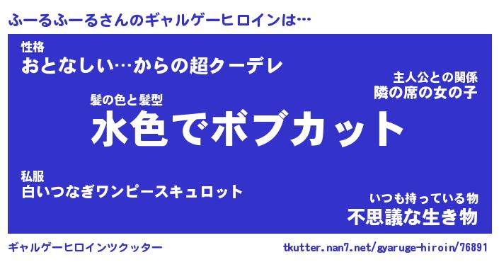 | 女子向けラノベタイトル風あだ名 | 『(仮)ふーるふーるのやんごとなき事情』 |