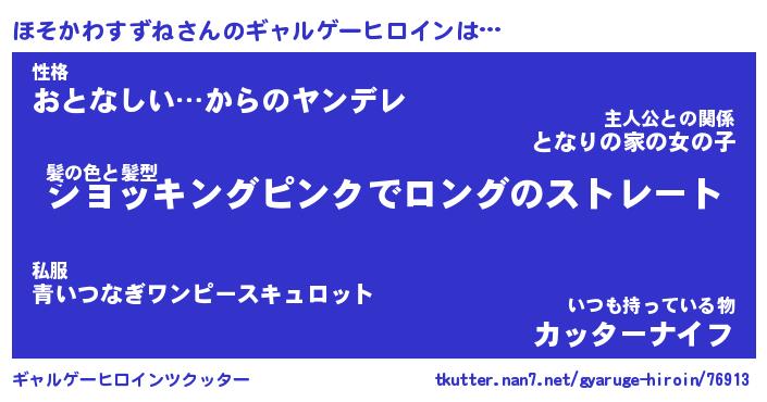 | 2回繰り返すあだ名 | 『ほそほそ』『ほほそそ』『ぬれぬれ』 |