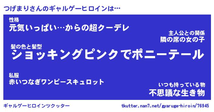 | ファンタジー風あだ名 | 『ツゲフェル』『エターナルツゲマリー』 |