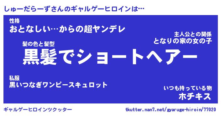 | ヘコむあだ名 | 『しゅにゅー』『酢こんぶ』『しゅを』 |