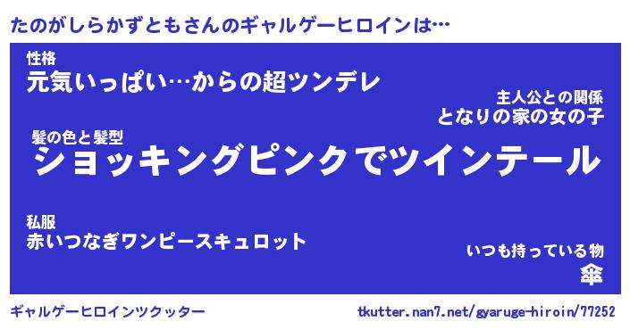 | 女子向けラノベタイトル風あだ名 | 『(仮)たのがしらかずとものやんごとなき事情』 |