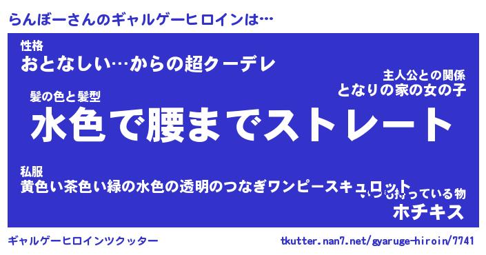 | 女子向けラノベタイトル風あだ名 | 『(仮)らんぼーのやんごとなき事情』 |