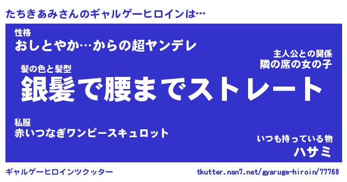 | ファンタジー風あだ名 | 『タチフェル』『エターナルタチキアミー』 |