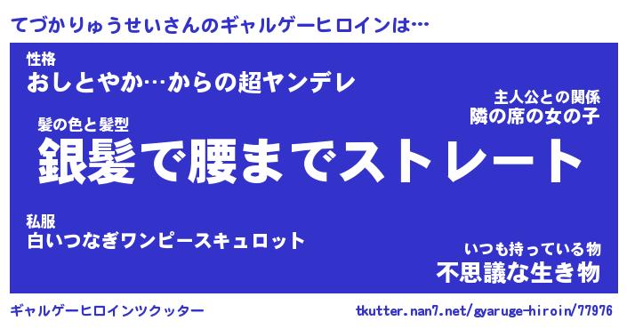 | 男性向けラノベタイトル風あだ名 | 『てづかりゅうせいの憂鬱』 |